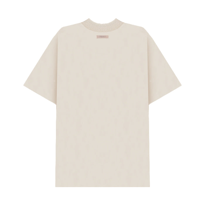 バックの首元にはESSENTIALSのシリコンラバーがあしらわれています。左胸には「ESSENTIALS」「FEAR OF GOD」のロゴがワンポイントで入っています。首元はクルーネックで首回りが楽です。シンプルながらESSENTIALSらしさが出ているTシャツです。