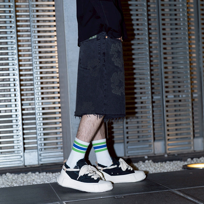 <DENIM TEARS(デニムティアーズ)BLACK MONO COTTON WREATH DENIM SHORTS の特徴>