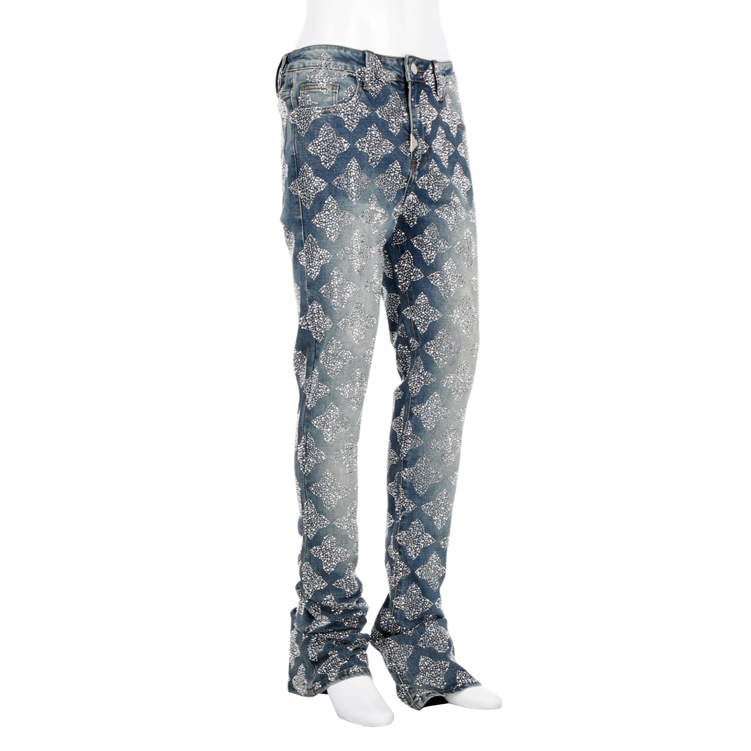 大胆かつモダンな印象を与えるデニムパンツ。スタッキングが特徴で、