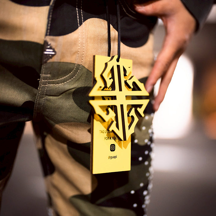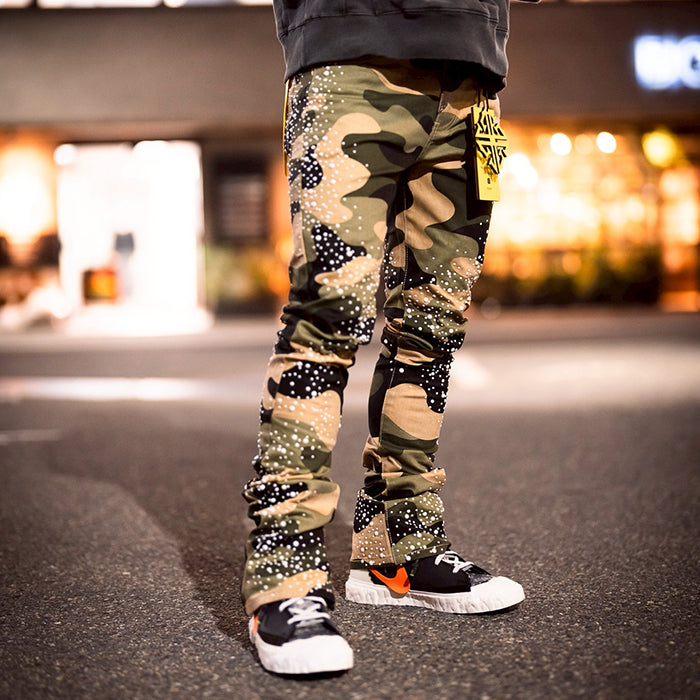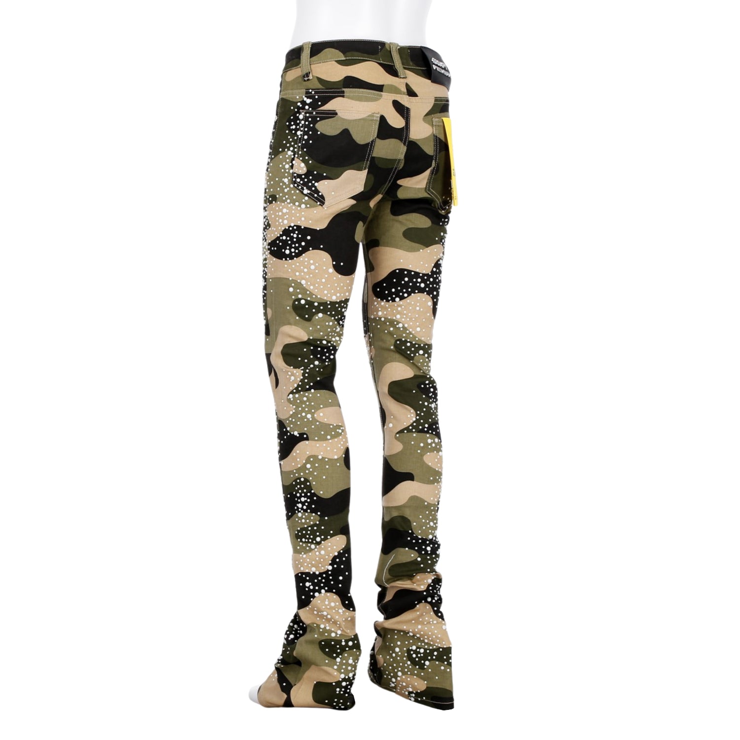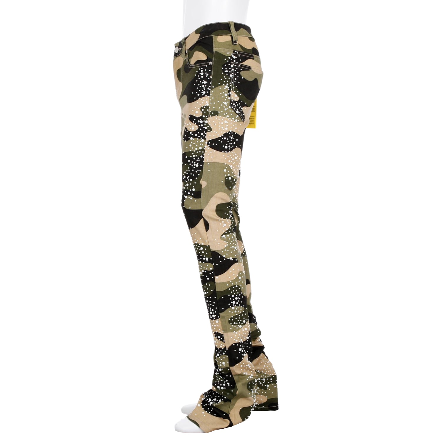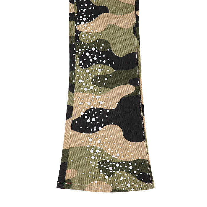 大胆なカモフラージュ柄に、パールのような装飾を無数に施したストリートファッションに新たなラグジュアリーの風を吹き込む一本。