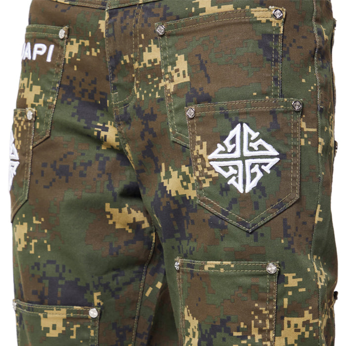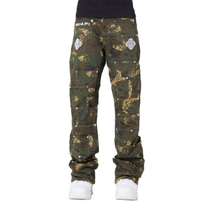 ミリタリーテイストを現代のストリートスタイルに昇華させたデニム。デジタルカモフラージュ柄をベースに、