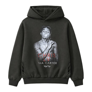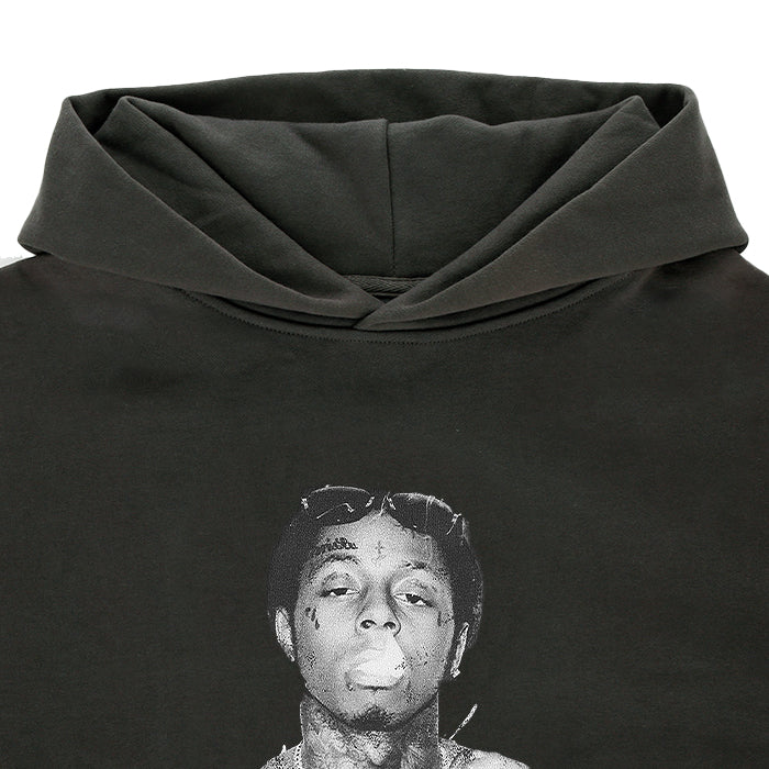 「Lil Wayne」をモチーフにしたグラフィックを大胆に落とし込んだ、リル・ウェイン フーディー。