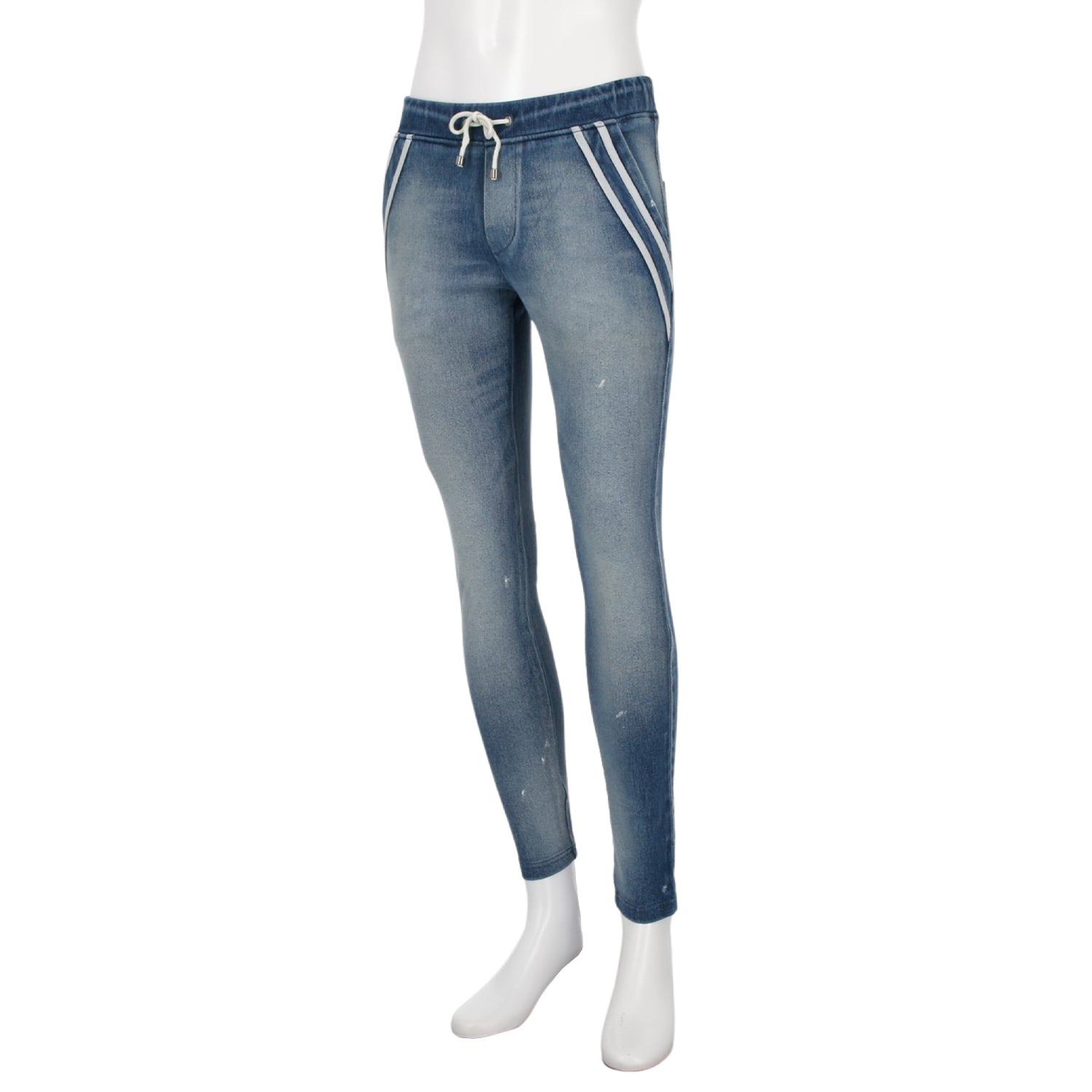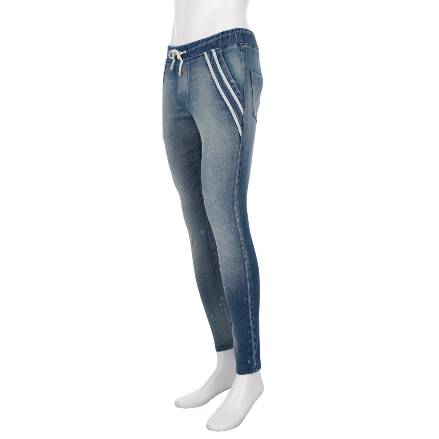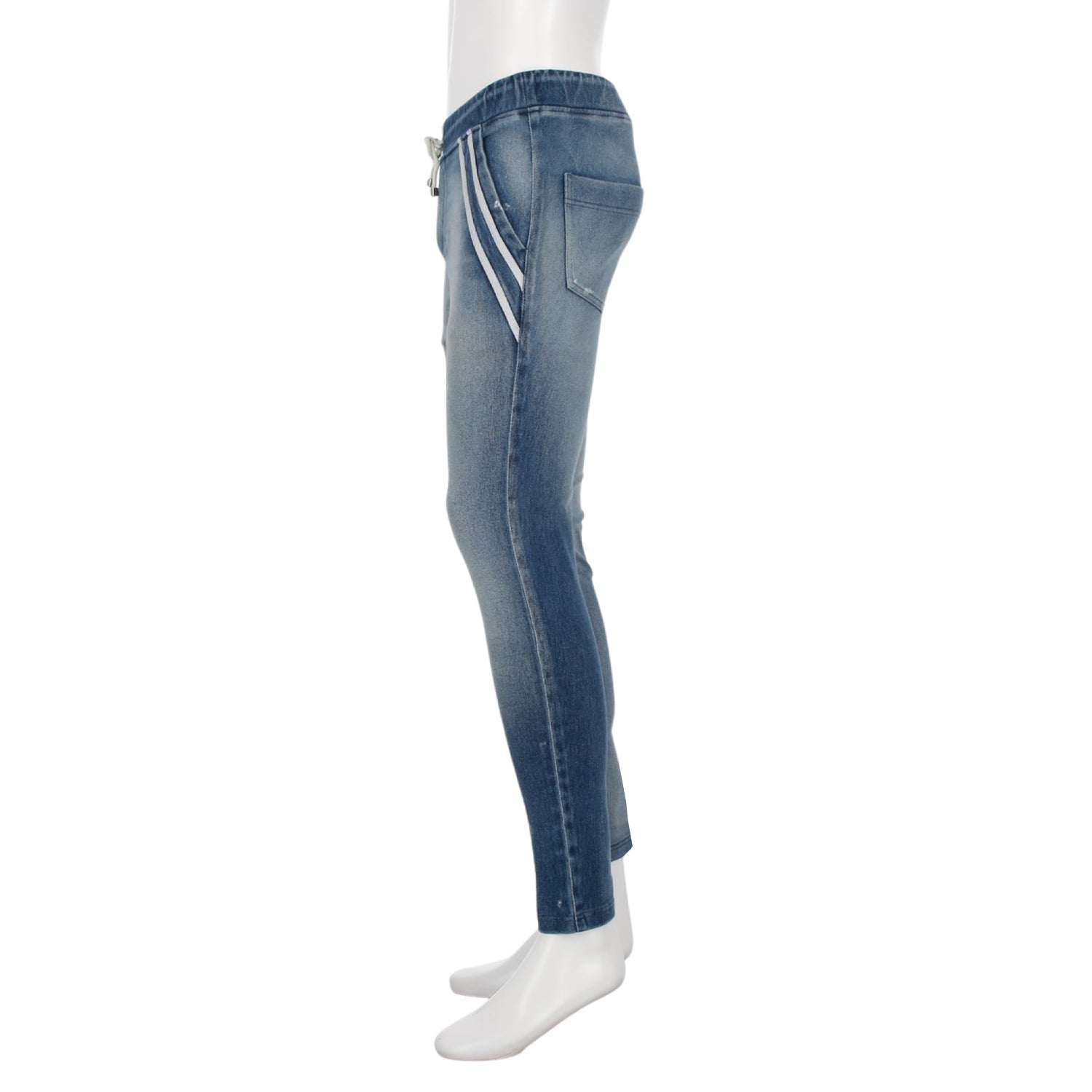 エッジの効いたスラッシュポケットに合わせダブルラインを入れたエッジラインパンツのデニムジャージバージョン