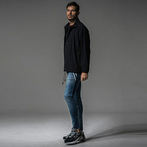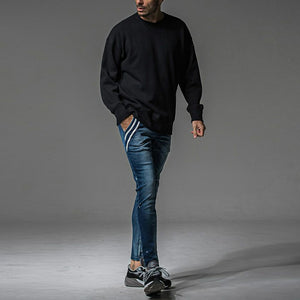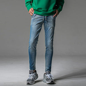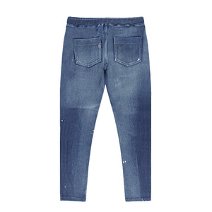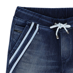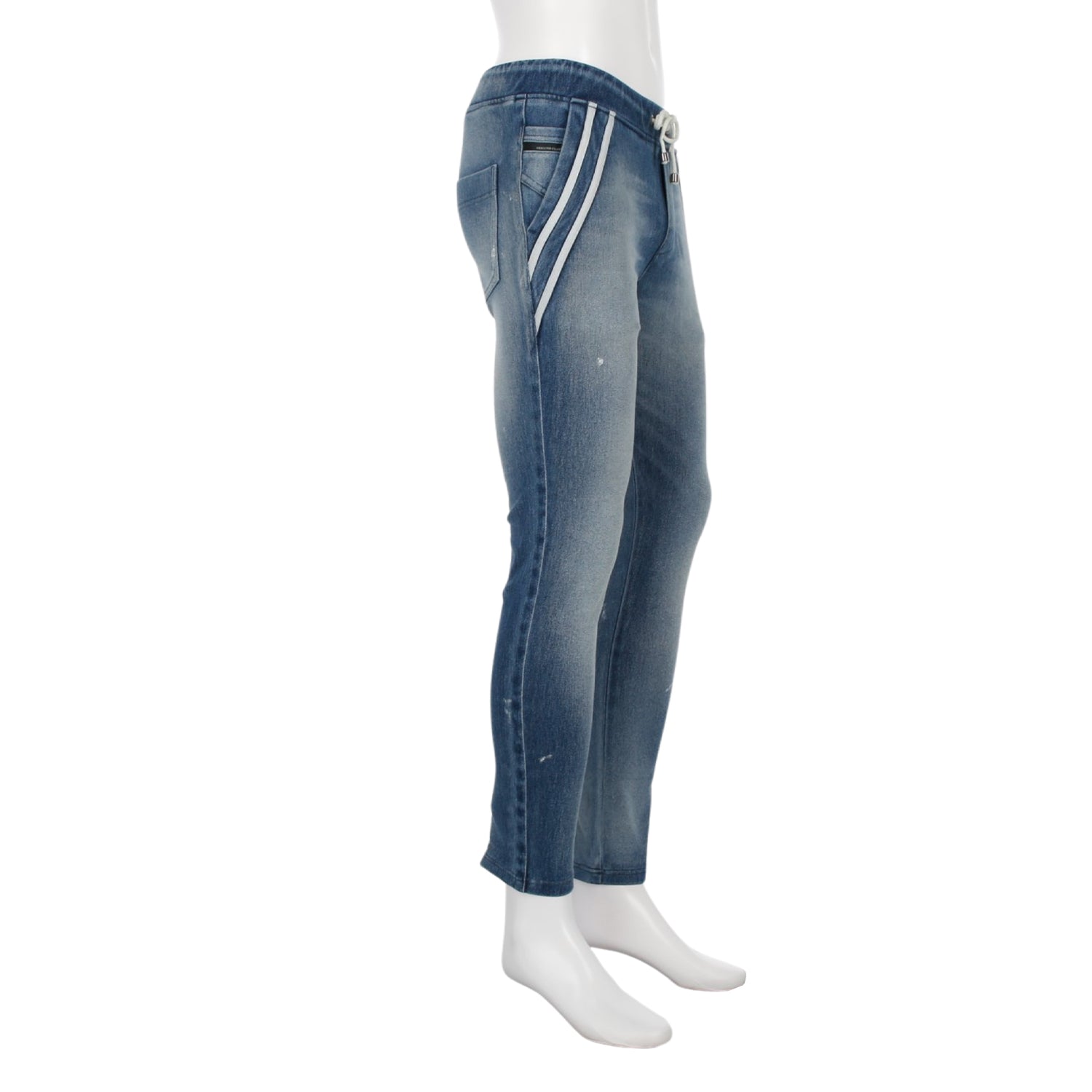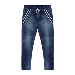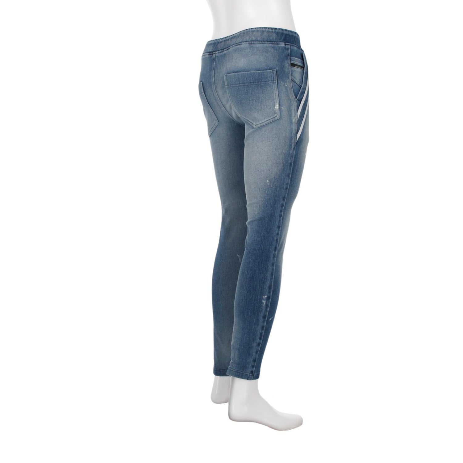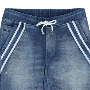 エッジの効いたスラッシュポケットに合わせダブルラインを入れたエッジラインパンツのデニムジャージバージョン