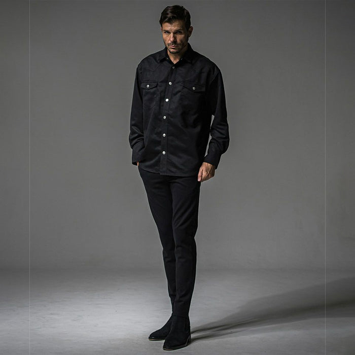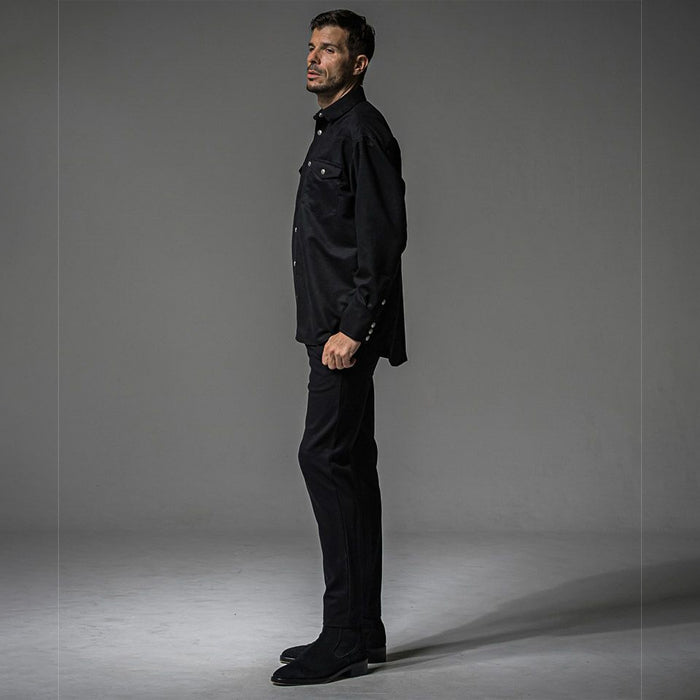 素材はレーヨンとナイロンを混紡させたダブルジャージで、度詰めで織り上げ、高級感を誘う厚みと、レーヨン特有の程よい落ち感、シルクの様な光沢と肌触り。