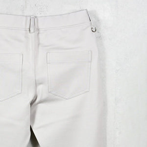 リサウンドのアイコンとなるデザイン、デニムをイメージした帯幅と、ホームベース型バックポケットはそのままに、サイドポケットは、サイドシームに沿った、エレガントなスリットポケットを採用。