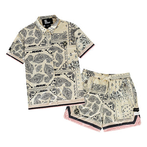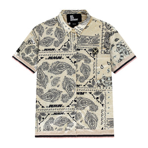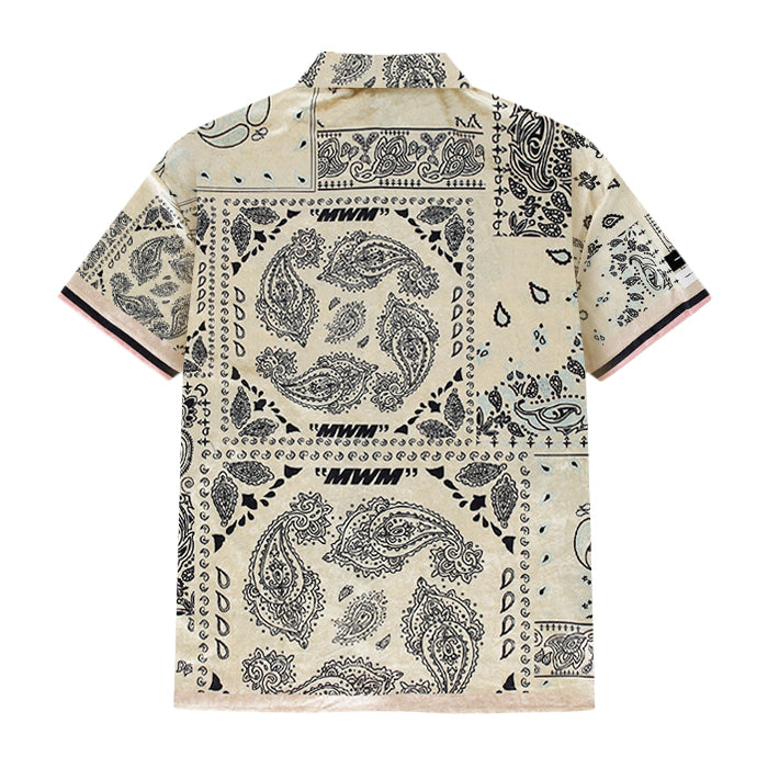 ベージュカラーをベースに、ペイズリーのバンダナ柄を