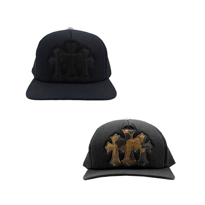 クロムハーツを象徴する「クロスモチーフ」を3連で 大胆に配置したトリプルクロスパッチキャップ。 立体的なレザーパッチが高級感と存在感を放ち、 ストリートからラグジュアリーまで幅広いスタイルにマッチします。 フロントの重厚なデザインに対し、 背面はメッシュ仕様で通気性抜群。 長時間の着用でも快適なフィット感を実現します。 ブランドのこだわりが細部にまで息づく、唯一無二の逸品です。サイズ展開:Fサイズ