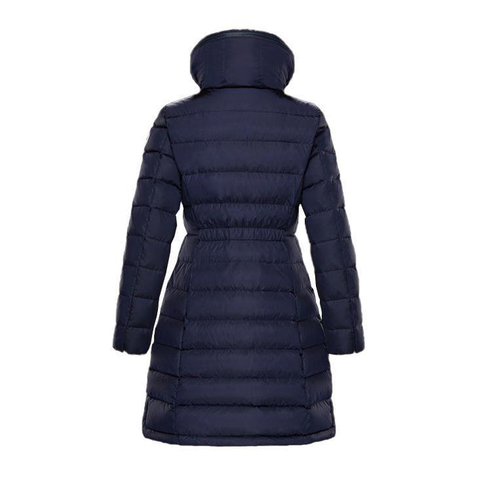 都会的な洗練さと機能性を兼ね備えたレディースロングダウンジャケット。